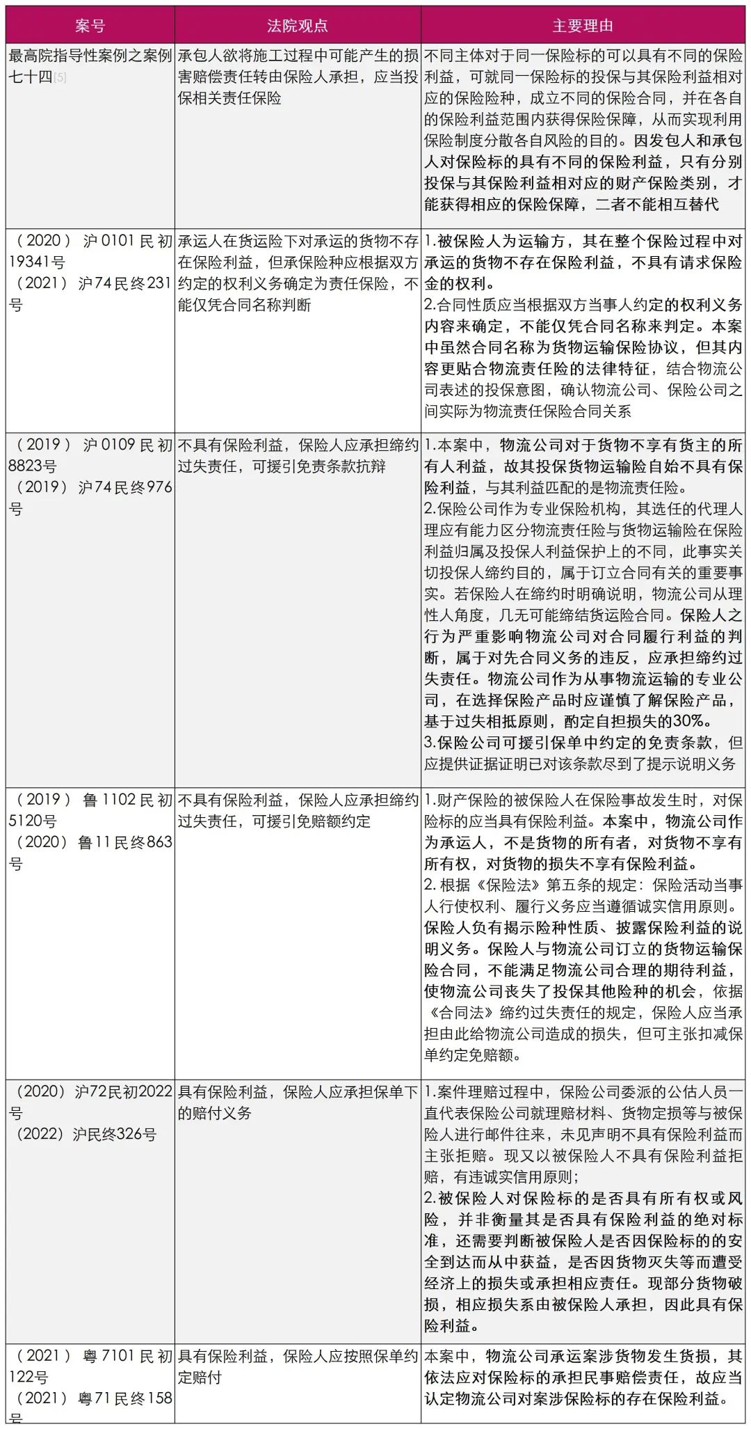 可見,目前司法實踐中仍有兩種裁判思路,如果認為承運人在貨運險下享有責任保險利益,S案的判決結果可能會有不同。