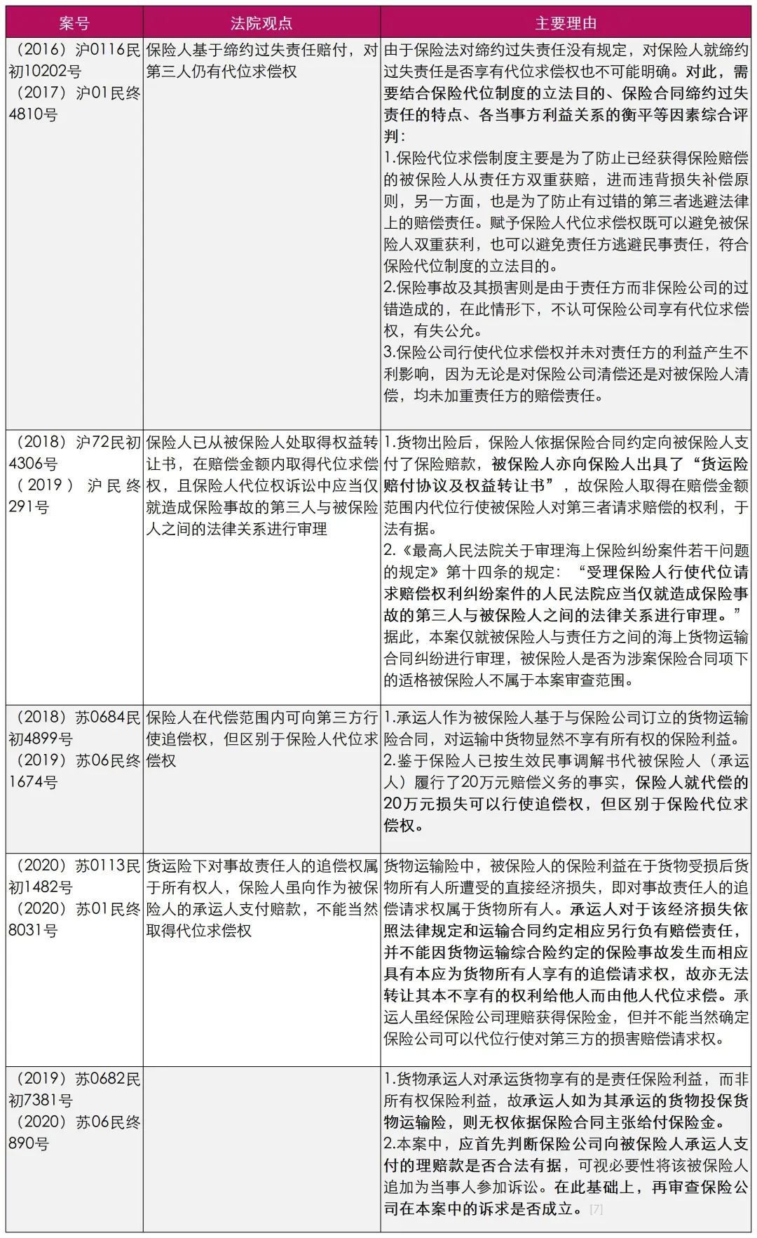附表:保險人承擔締約過失責任后的追償權利,有關判決及裁判觀點梳理: