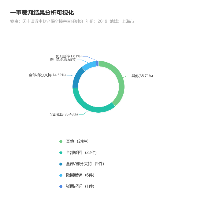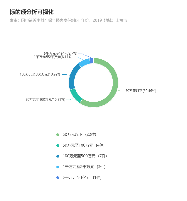 其次,二者在性質(zhì)上存在重大區(qū)別。總體而言,“訴責(zé)險(xiǎn)”的保險(xiǎn)標(biāo)的為被保險(xiǎn)人對第三者依法應(yīng)付的賠償責(zé)任,通常情況下,責(zé)任保險(xiǎn)合同不會(huì)約定保險(xiǎn)金額,而是通過合同設(shè)定責(zé)任限額。而且,“訴責(zé)險(xiǎn)”作為責(zé)任險(xiǎn)的情況下,通過外部律所外審和法院承辦或者立案法官的審查,其風(fēng)險(xiǎn)通常可以預(yù)判和評估,且目前大型保險(xiǎn)公司法務(wù)審查也都會(huì)趨向于謹(jǐn)慎,即使產(chǎn)生保全錯(cuò)誤,賠償金額也較小。根據(jù)我們的檢索結(jié)果,2019年上海市各級人民法院共計(jì)審理侵權(quán)責(zé)任糾紛類案件40572起,其中涉及訴中財(cái)產(chǎn)保全損害責(zé)任糾紛的案件僅有80起,不到侵權(quán)責(zé)任糾紛類案件總數(shù)的2‰。在這80起案件中,近60%的案件爭議標(biāo)的為50萬元以下,在一審中,僅有9起案件得到了法院全部或部分的支持,僅占侵權(quán)責(zé)任類案件總數(shù)的萬分之二。