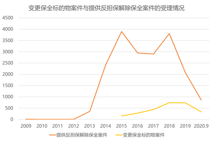 第一,“需求泡沫”背后,解除財(cái)產(chǎn)保全保證保險(xiǎn)面臨著巨大的市場困境。為規(guī)避上述風(fēng)險(xiǎn),保險(xiǎn)公司在提供保證保險(xiǎn)時(shí),通常都要求投保人提供足額且無瑕疵的反擔(dān)保。7但如果投保人有能力提供無瑕疵且足額的反擔(dān)保,事實(shí)上完全不必尋求保險(xiǎn)公司投保解除財(cái)產(chǎn)保全保證保險(xiǎn)。這是因?yàn)楦鶕?jù)《民訴法解釋》第167之規(guī)定,財(cái)產(chǎn)保全的被保全人提供其他等值擔(dān)保財(cái)產(chǎn)且有利于執(zhí)行的,人民法院可以裁定變更保全標(biāo)的物為被保全人提供的擔(dān)保財(cái)產(chǎn)。在司法實(shí)踐中,被保全人向法院提供足額無瑕疵的擔(dān)保財(cái)產(chǎn)后,法院往往會(huì)支持解封請求,如上海高院和江蘇高院等都曾裁定準(zhǔn)許解封被保全人的保全財(cái)產(chǎn)(參見 (2016)滬民終326號(hào)、(2019)蘇民終983號(hào))。在這種情況下,被保全人完全可以自行向法院申請解封財(cái)產(chǎn)保全,而無需畫蛇添足再和保險(xiǎn)公司置換保函,因此向法院提供反擔(dān)保解除保全就成了被保全人的最優(yōu)解。近些年來,如下圖所示,除了2019年與2020年受疫情影響外,被保全人提供反擔(dān)保解除保全的案件受理量也逐年攀升。8如果存在保全申請人惡意申請保全,或者被告有證據(jù)足以駁回原告訴請的情形,也可以直接向法院申請解除保全,亦無需保險(xiǎn)公司的介入。因此解除財(cái)產(chǎn)保全保證保險(xiǎn)的需求泡沫背后實(shí)際上是被保全人提供反擔(dān)保解除保全的旺盛需求,而這一需求,并無法通過推廣解除財(cái)產(chǎn)保全保證保險(xiǎn)得以解決。