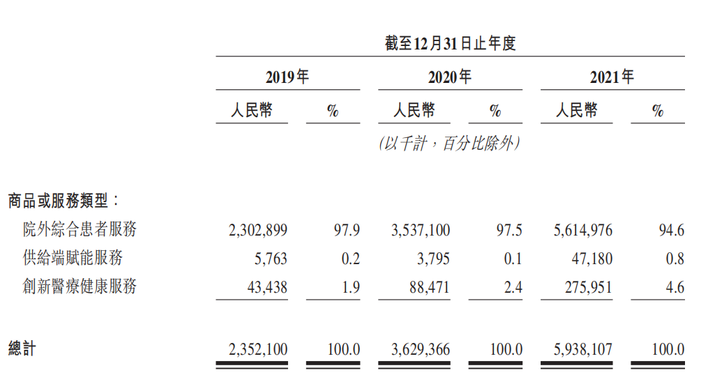 2018年-2021年,圓心科技營業(yè)收入分別為8.19億元、23.52億元、36.29億元、59.38億元。根據(jù)“弗若斯特沙利文”報(bào)告,按收益計(jì)算,圓心科技是中國第一大專注于處方藥的綜合醫(yī)藥及醫(yī)療交付平臺(tái)。