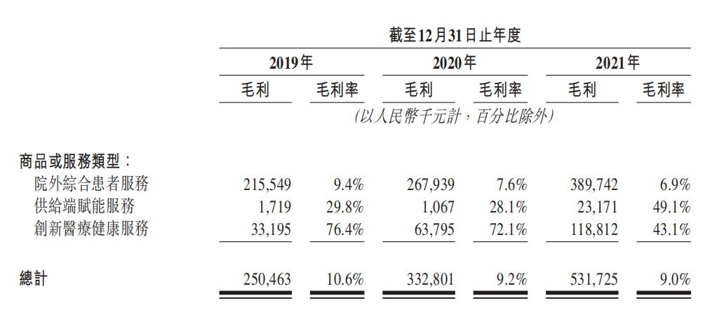 據(jù)《招股書》數(shù)據(jù),圓心科技的整體毛利率并不高,約在9%左右。其中院外綜合患者服務(wù)的毛利率僅為6.9%,大幅拉低了整體毛利率。