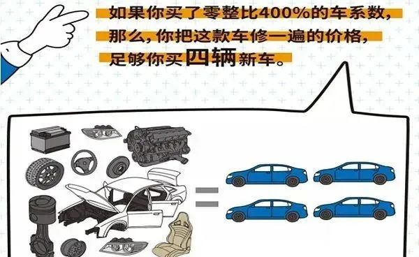 零整比系數(shù),簡單說就是把車的配件全部替換一遍,所花的錢能買幾輛新車。零整比系數(shù)越高,也就意味著配件價格更貴,保險公司可能承擔的風險更高